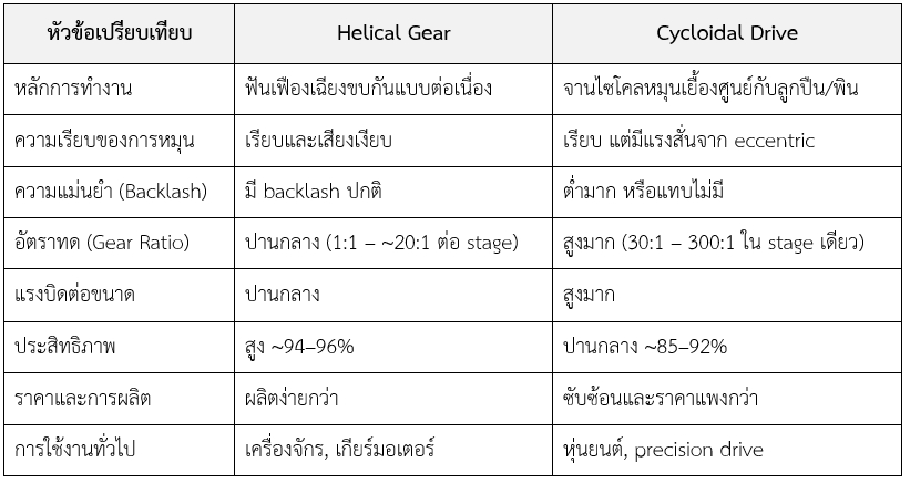 เฟืองฟันเฉียง (Helical Gear) กับ เกียร์ไซโคล (Cycloidal Drive / Cycloidal Gear)